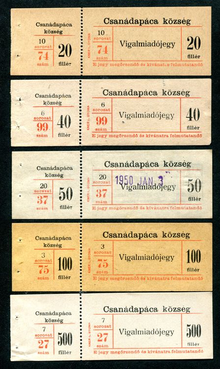 Csanádapáca vigalmi adójegy sor