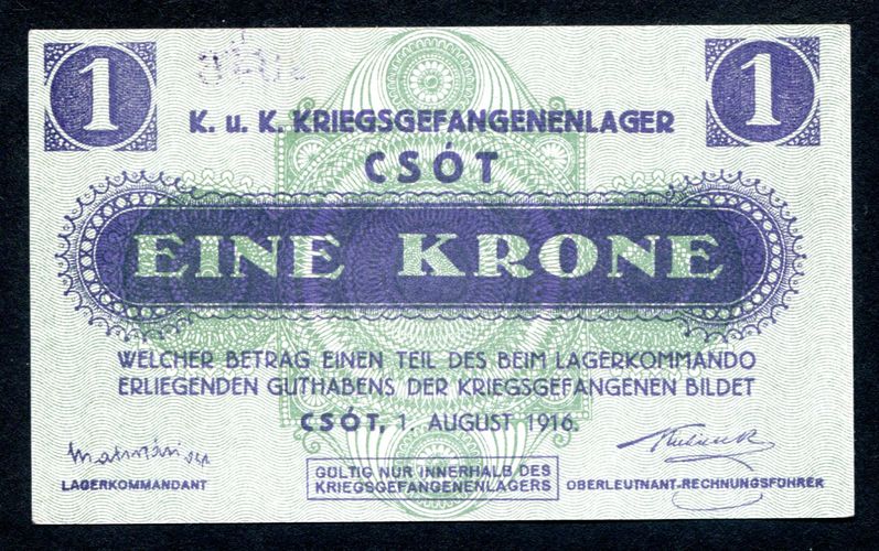 Hadifogolytábor - Csót 1 Korona. Csak sorszáma van.