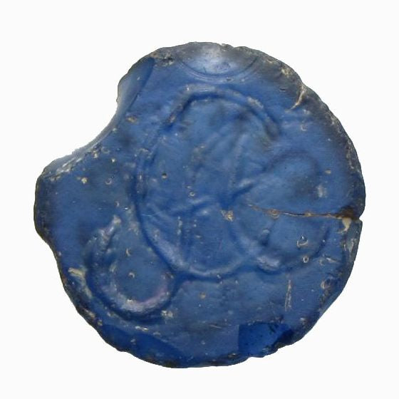 Aspremont gróf zborói uradalmának egész napi robotbárcája. Középkék árnyalatú üvegmasszából.